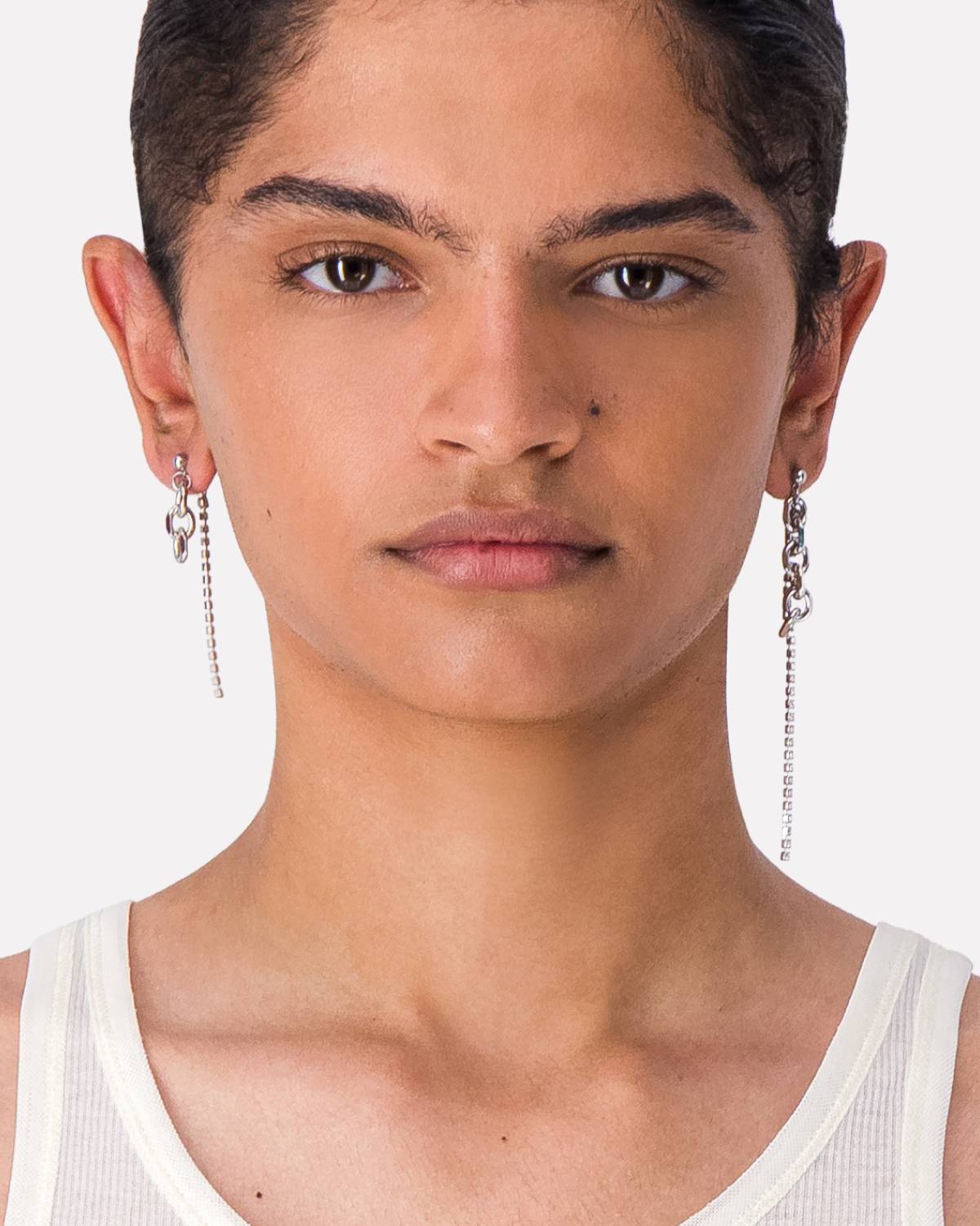 Glam with an edge – The Dana Crystal Earrings merge industrial chains with delicate crystals. Their asymmetrical balance of strength and softness makes them a signature piece for anyone who loves bold contrasts.