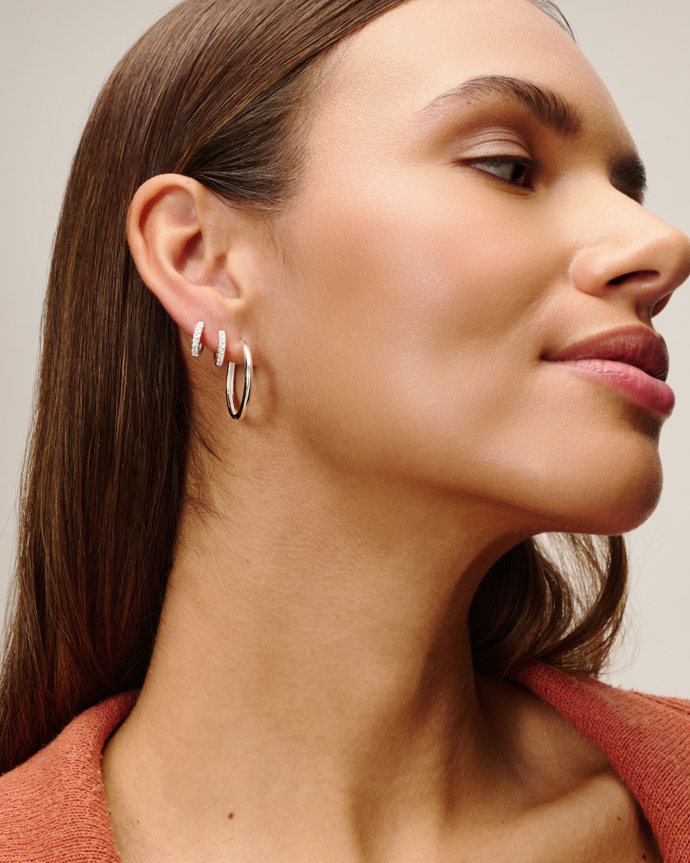These stylish Huggies XL from Pompidou impress with a classic design. The cool creoles are made of recycled sterling silver and are entirely suitable for everyday use. They can be matched to different looks. For an Instagram-ready ear party, the creoles can be combined with scintillating studs and/or trendy ear cuffs.