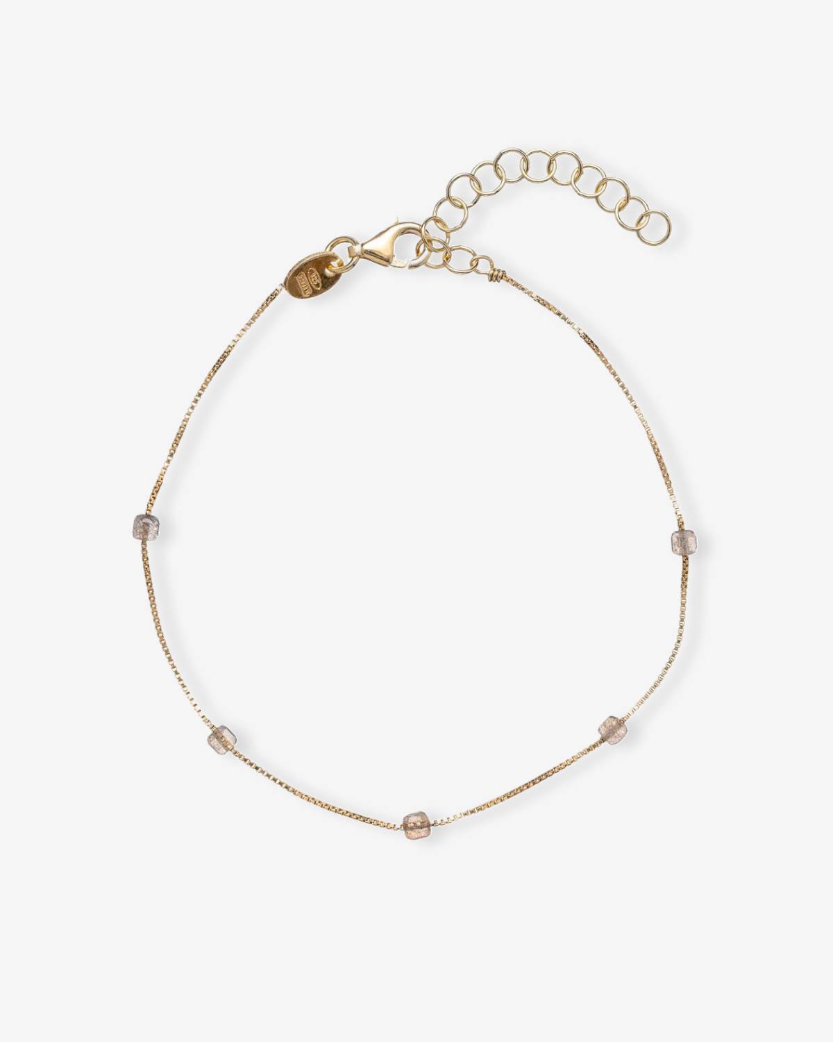 The Marie bracelet plays with contrast: fine 18ct gold-plated links frame labradorite beads that shimmer mysteriously in every light. A piece that balances movement and stillness – simple, modern, and infused with a touch of laid-back glamour.