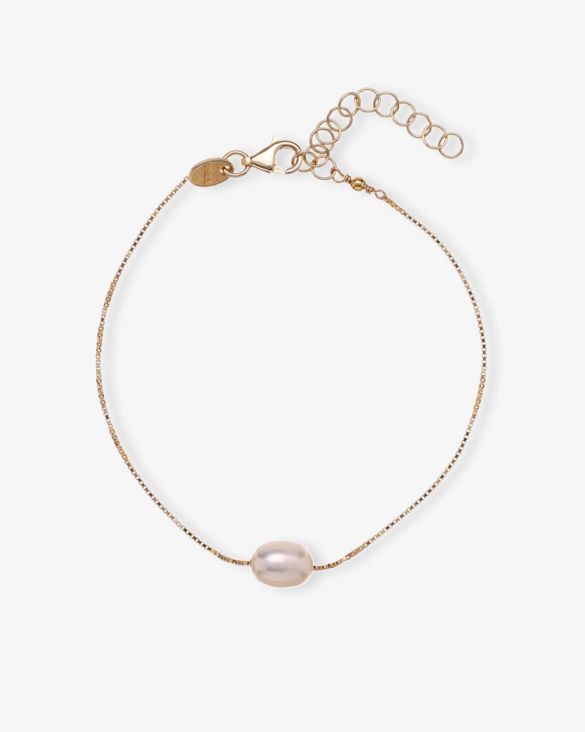 Simplicity, redefined: The Medea bracelet shows how powerful a single detail can be. A fine 18ct gold-plated chain holds one glowing pearl – pure, clear, and effortlessly elegant. The design radiates calm refinement, a delicate jewel for understated modern grace.