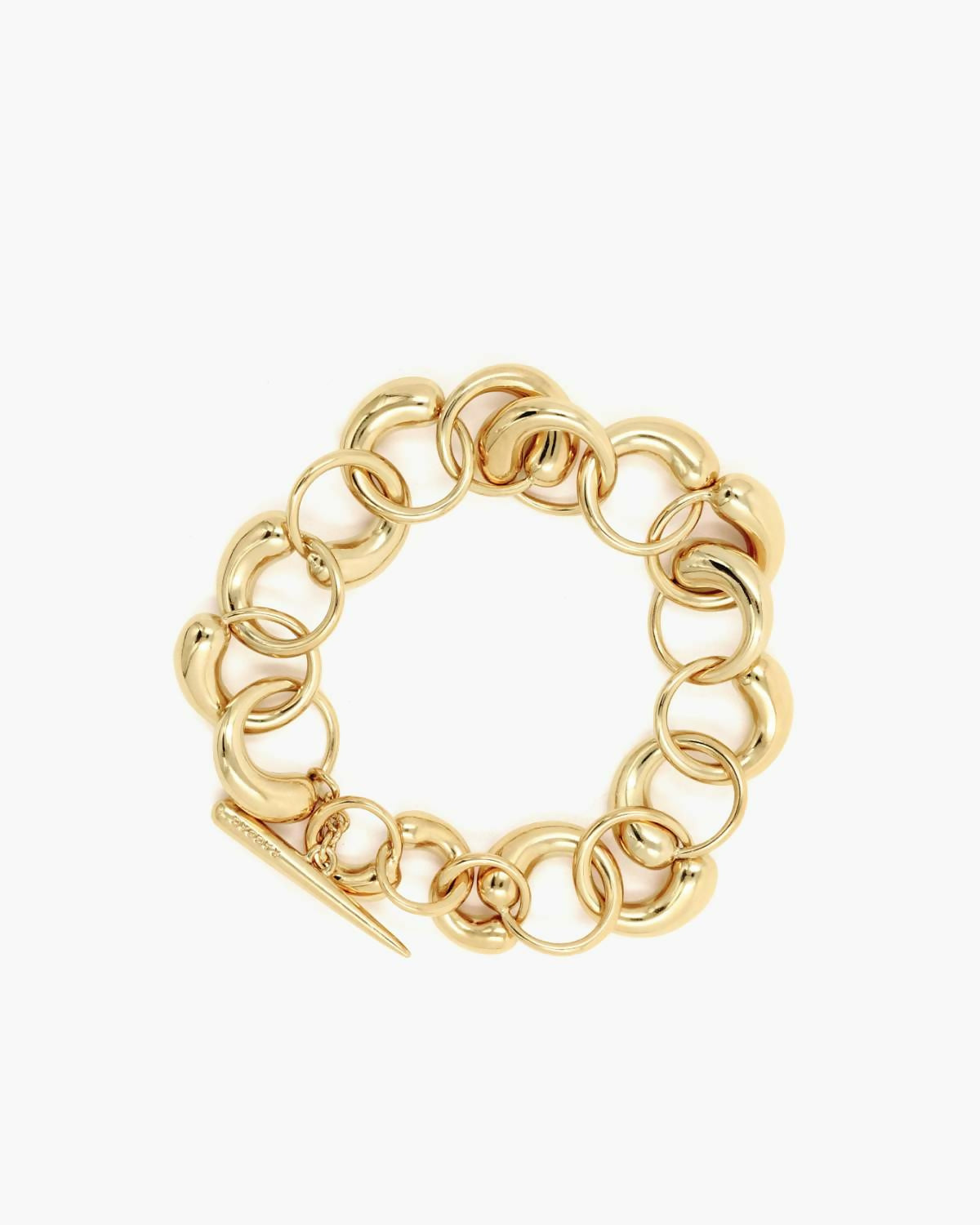 The Oculus bracelet is made with the signature Oculus links, creating a dominant piece that draws connotations to the bold modernistic Scandinavian heirlooms.