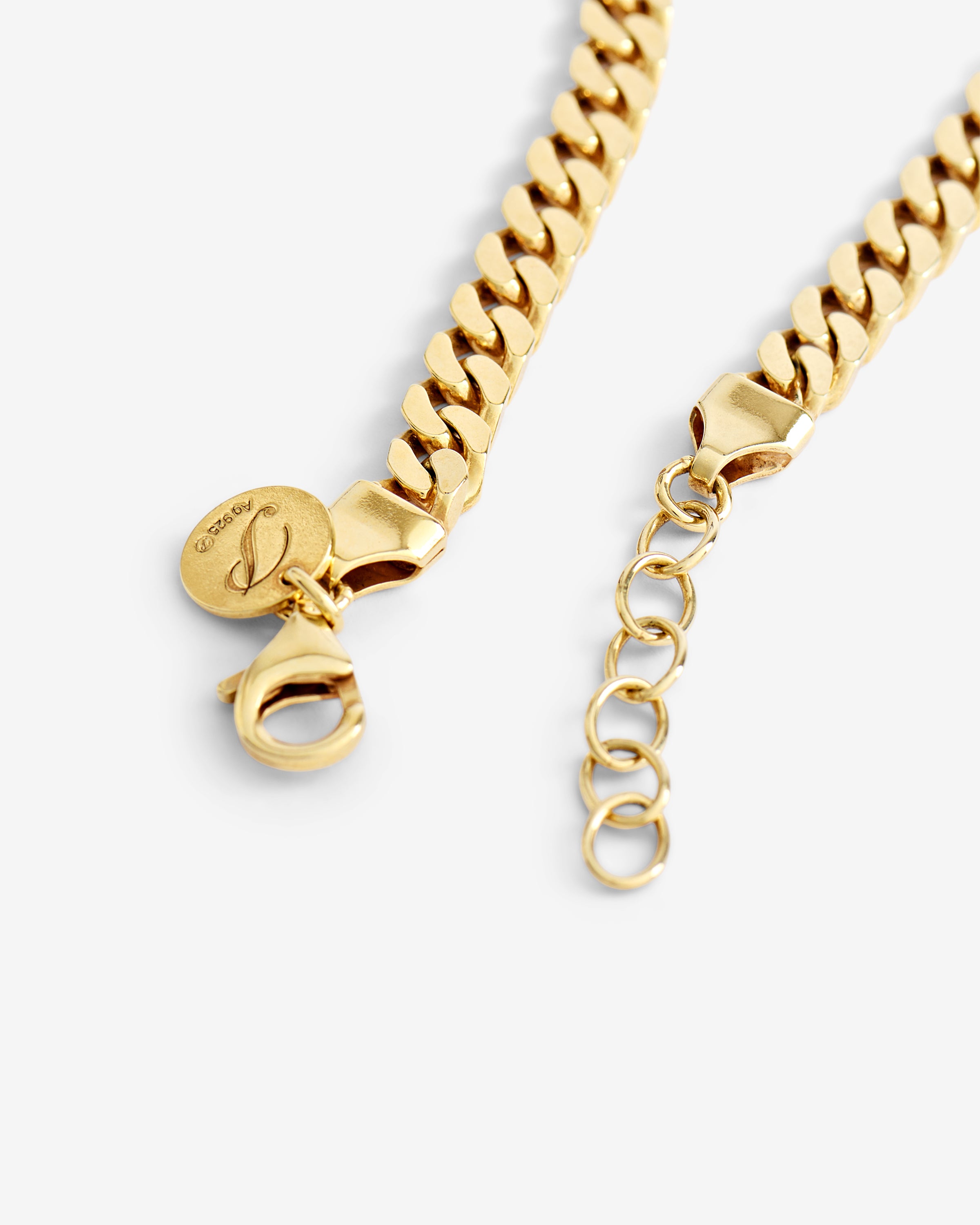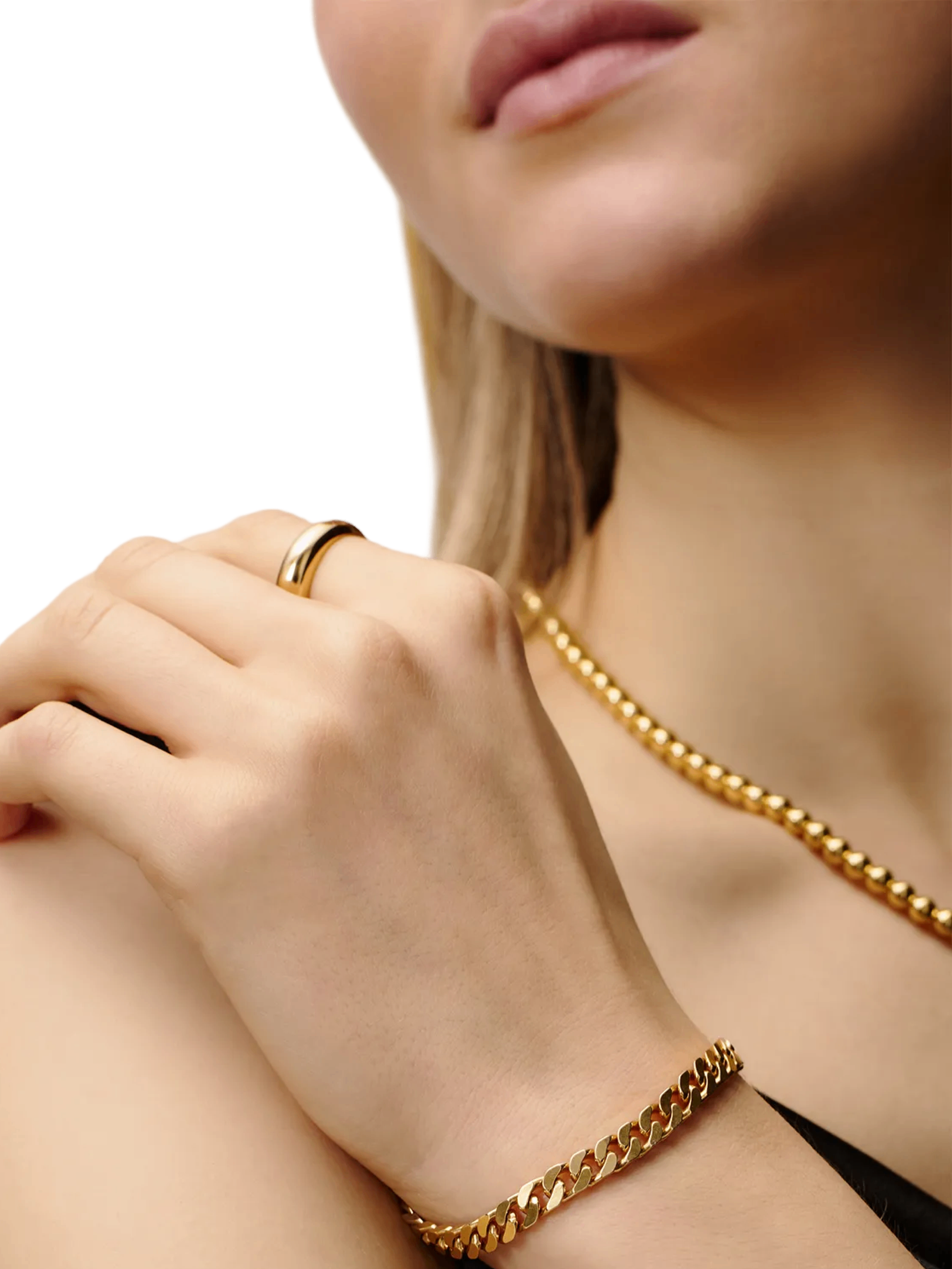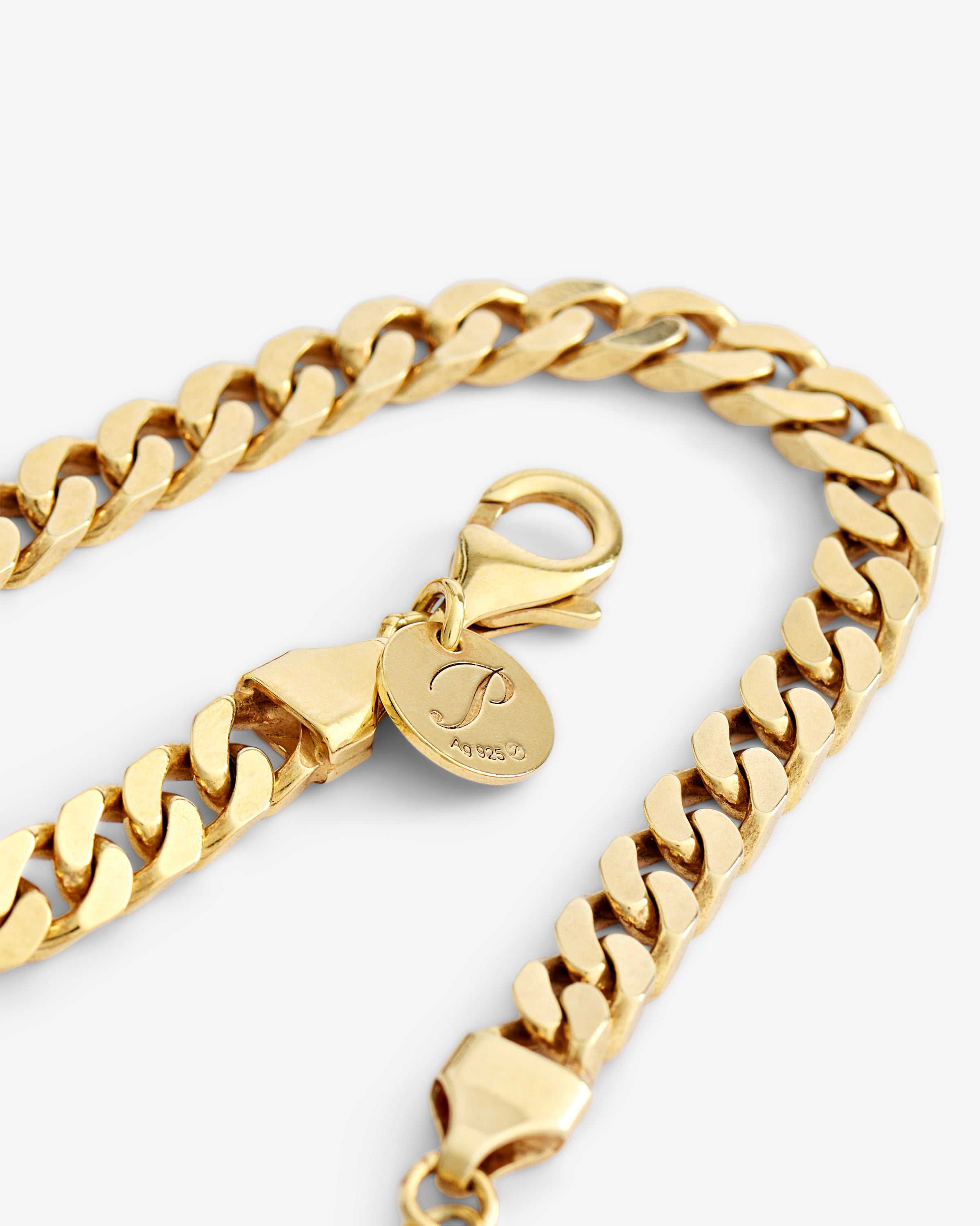 With simple yet powerful elegance, this Pompidou bracelet embraces the wrist. The curb chain made of high-quality sterling silver is plated with 18-karat gold and is waiting to be combined with other jewelry in the trendy chain layering. Especially in combination with other colors and textures, you can create exciting looks with this statement piece.