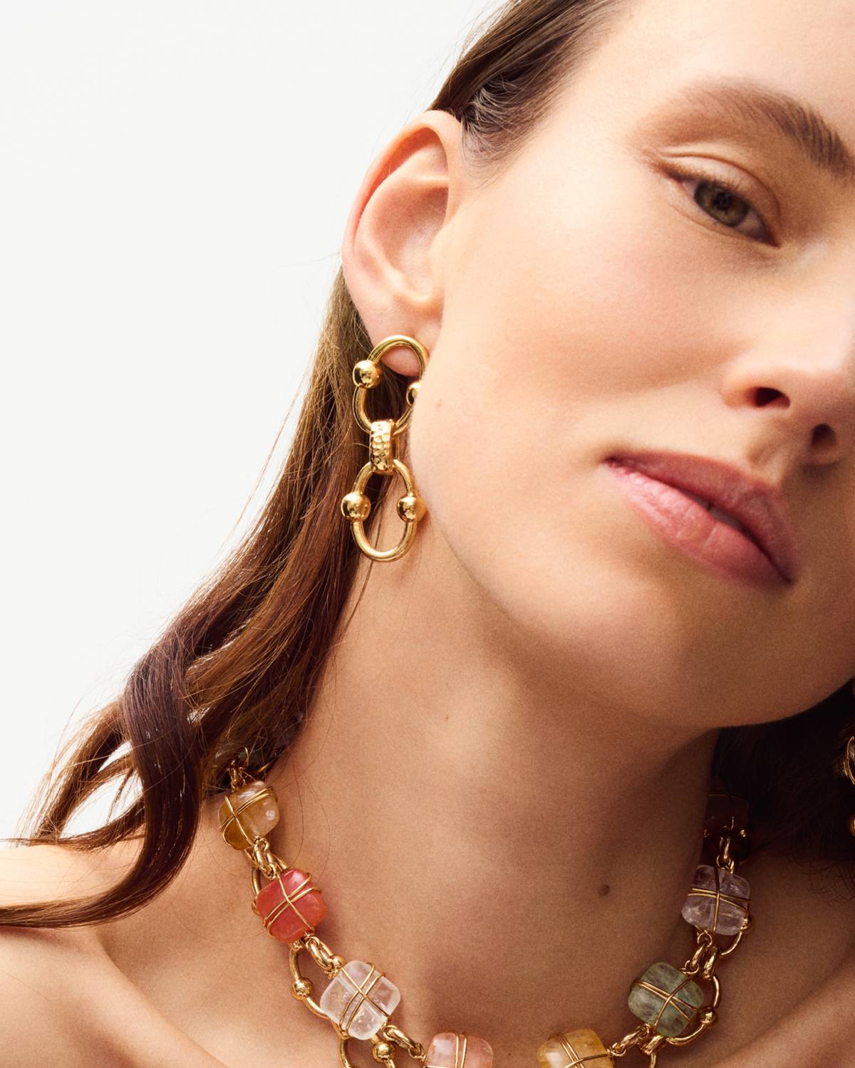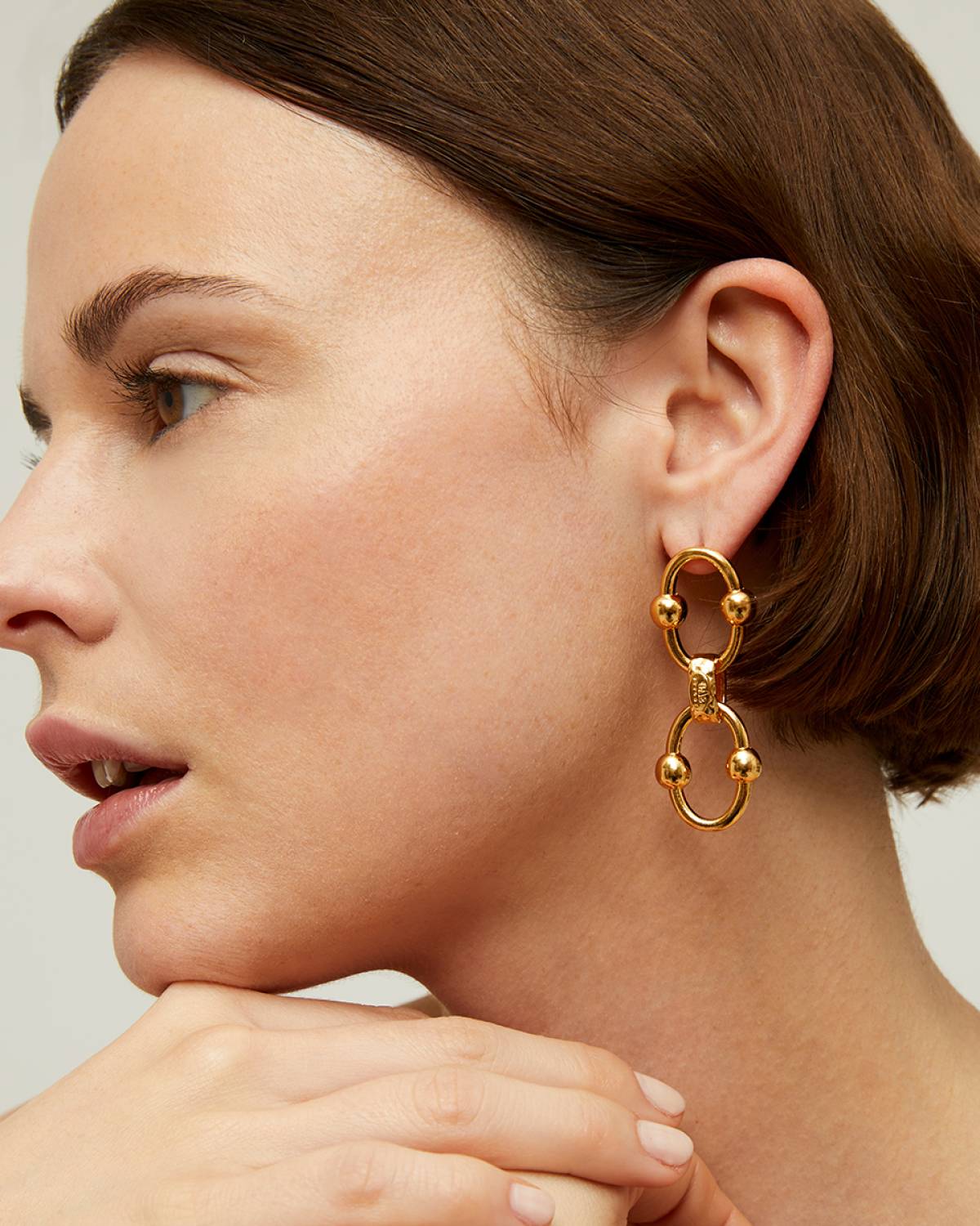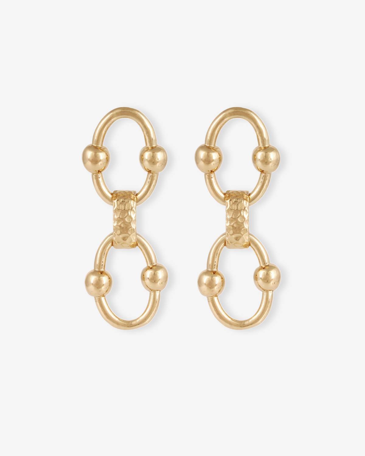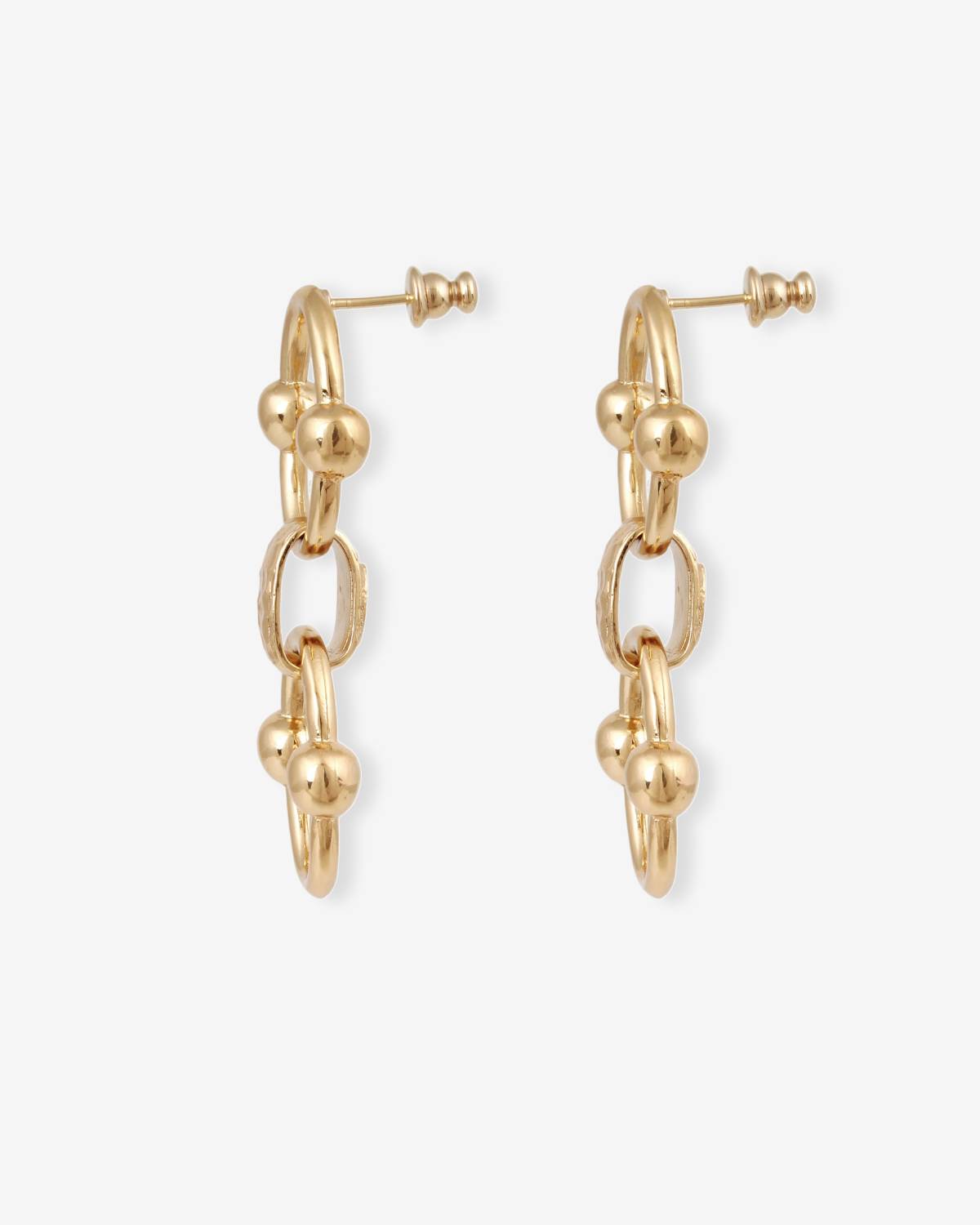 Power in motion. The Rivage drop earrings stand out with interlocking elements and polished bead details. Luxurious 24ct gold plating enhances their radiant depth and French sophistication. Architectural, bold and confident – designed to bring dynamic glow to every look.