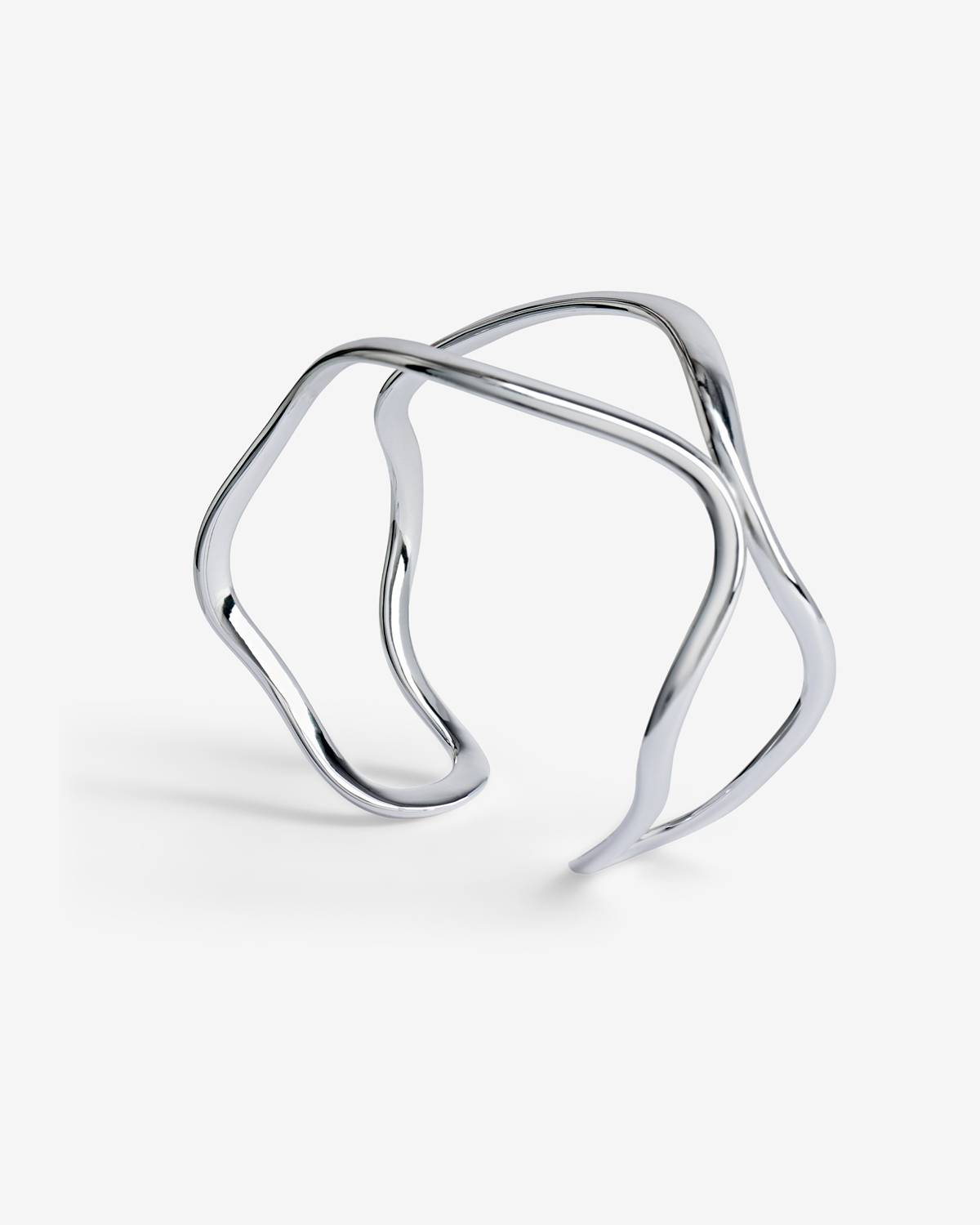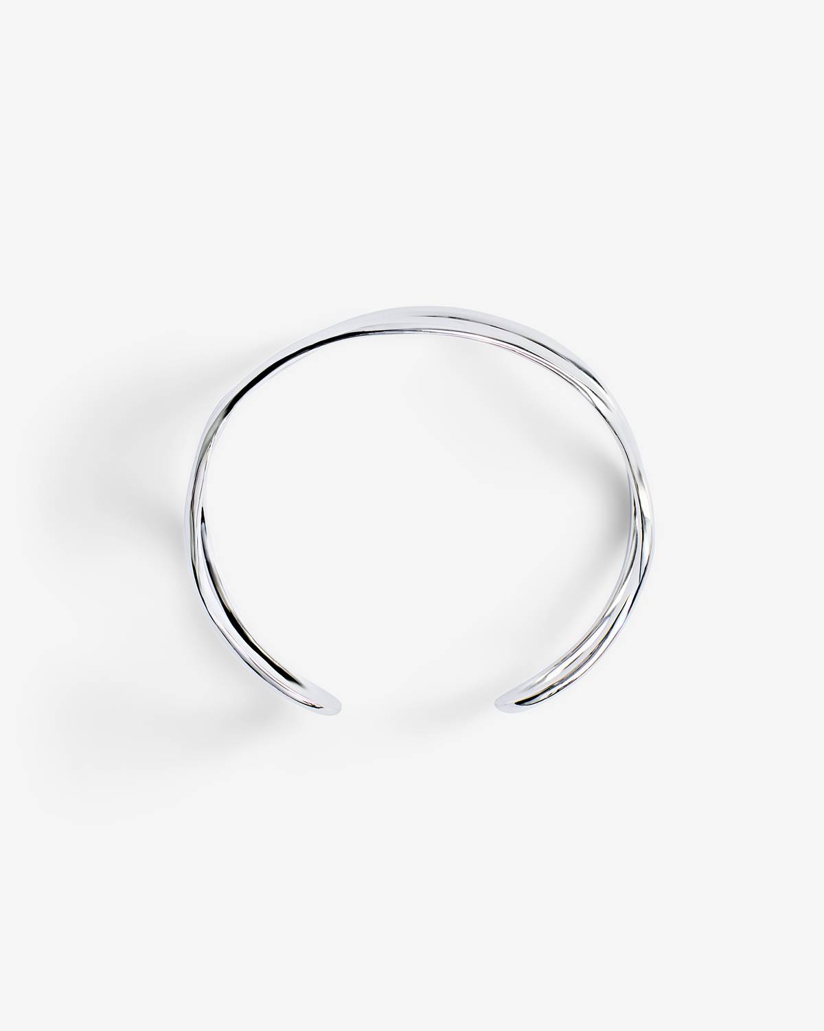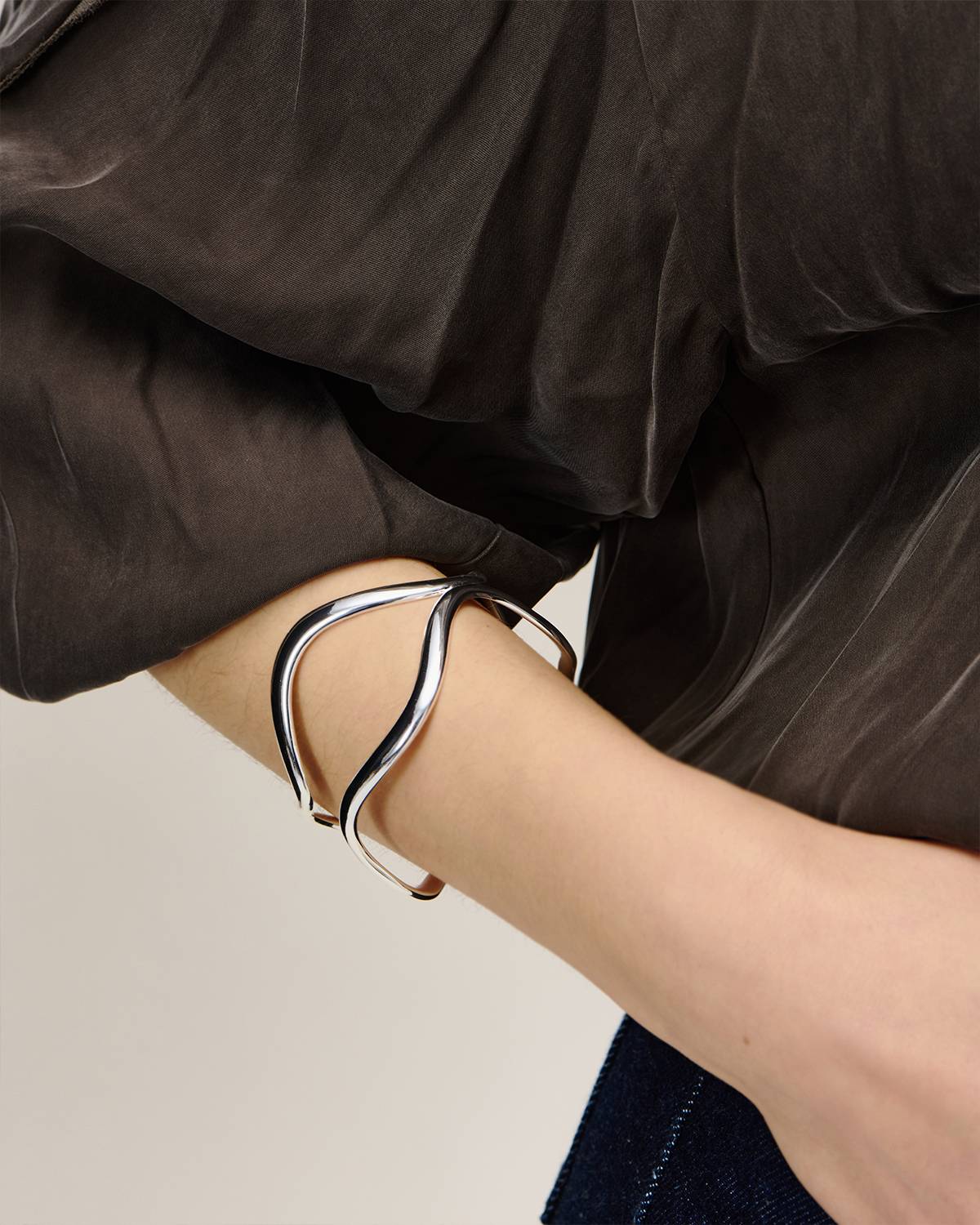 The Solstice Dual bangle by Pompidou plays with form and flow – two lines meeting in elegant motion. Its organic design feels light and fluid, inspired by the rhythm of light. The silver plating adds a cool brilliance, emphasizing its sculptural finesse. A timeless piece of jewelry with flowing elegance.