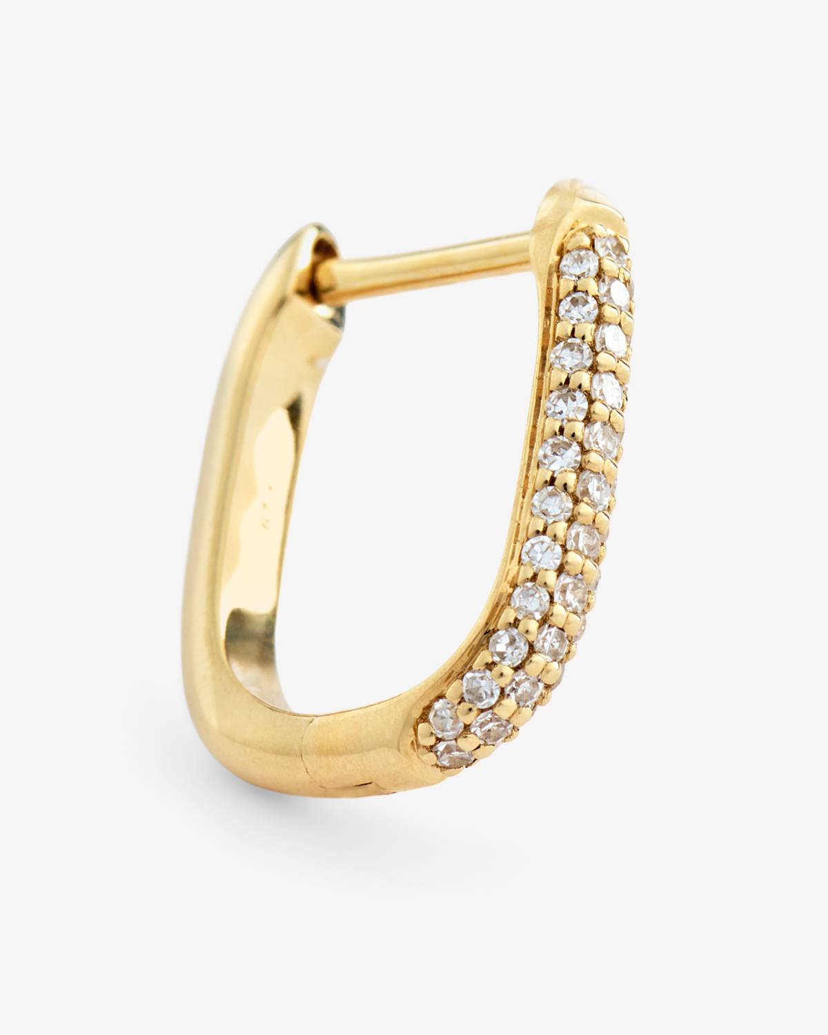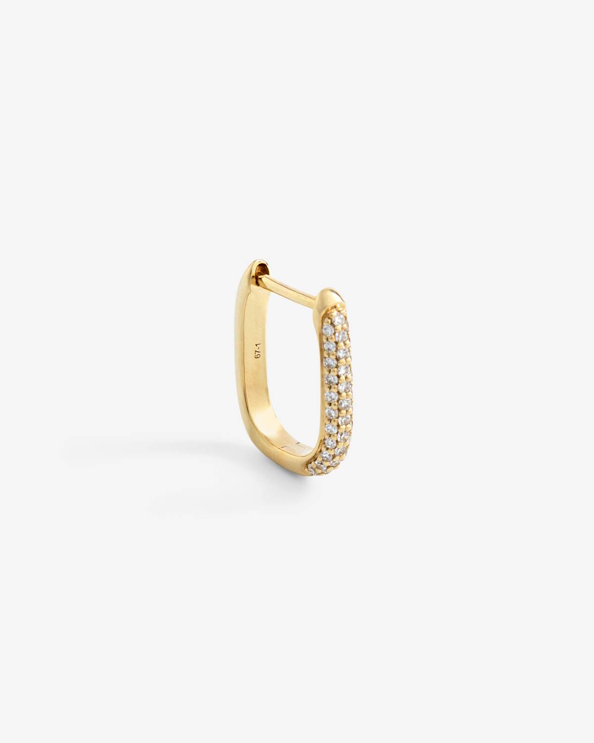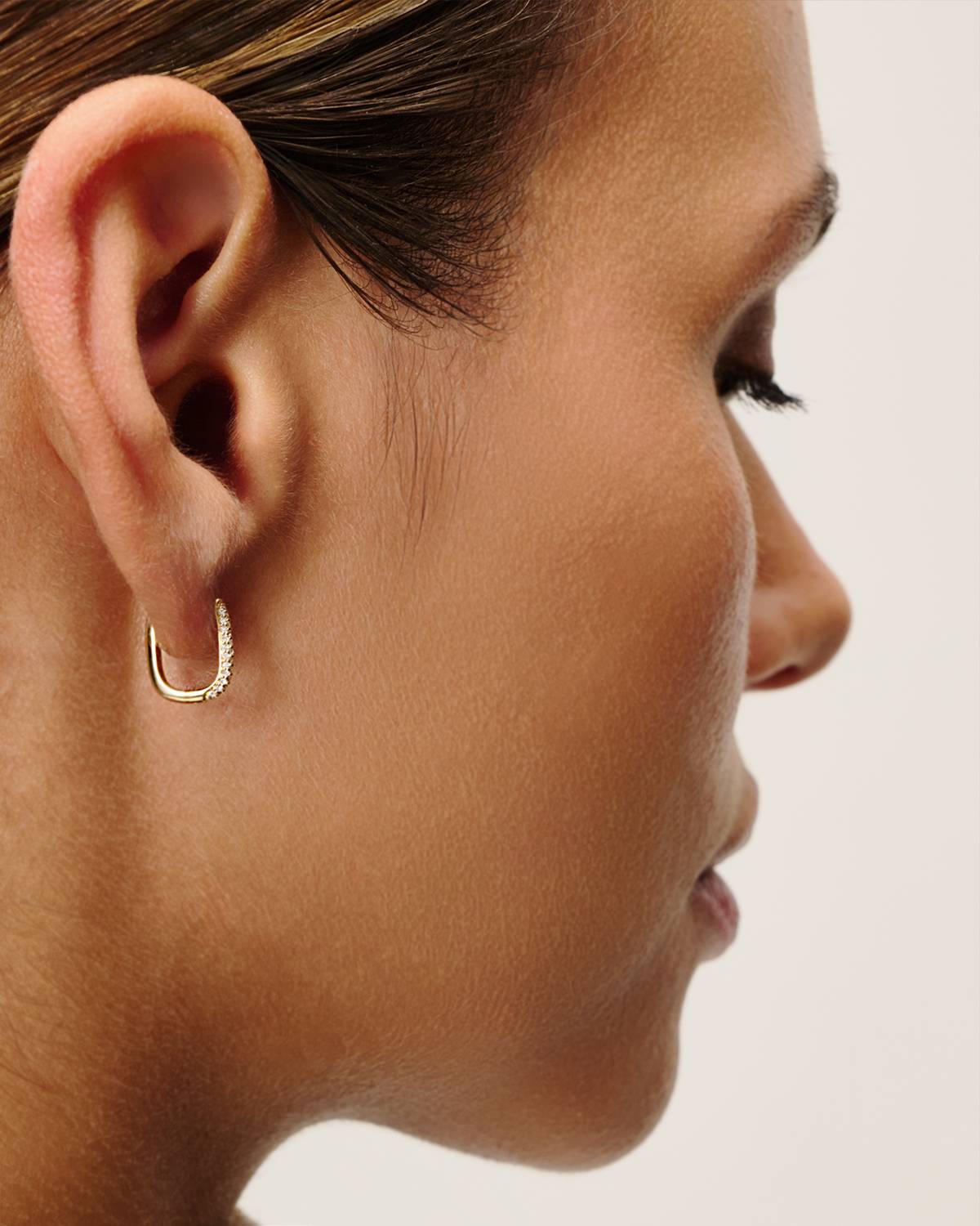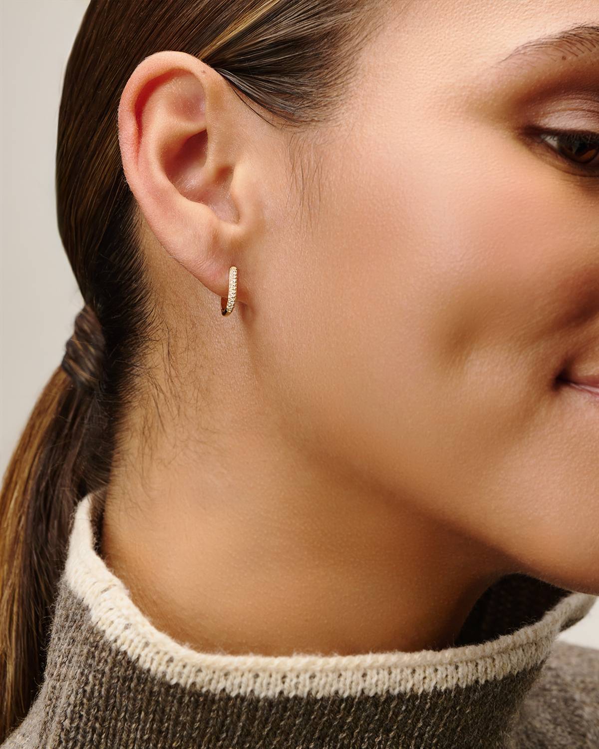 A touch of starlight for your ear: The Stella hoop combines sleek curves with a front row of diamond stones set in 14ct real gold plating. Elegant, modern, and luminous – a true highlight with celestial charm.