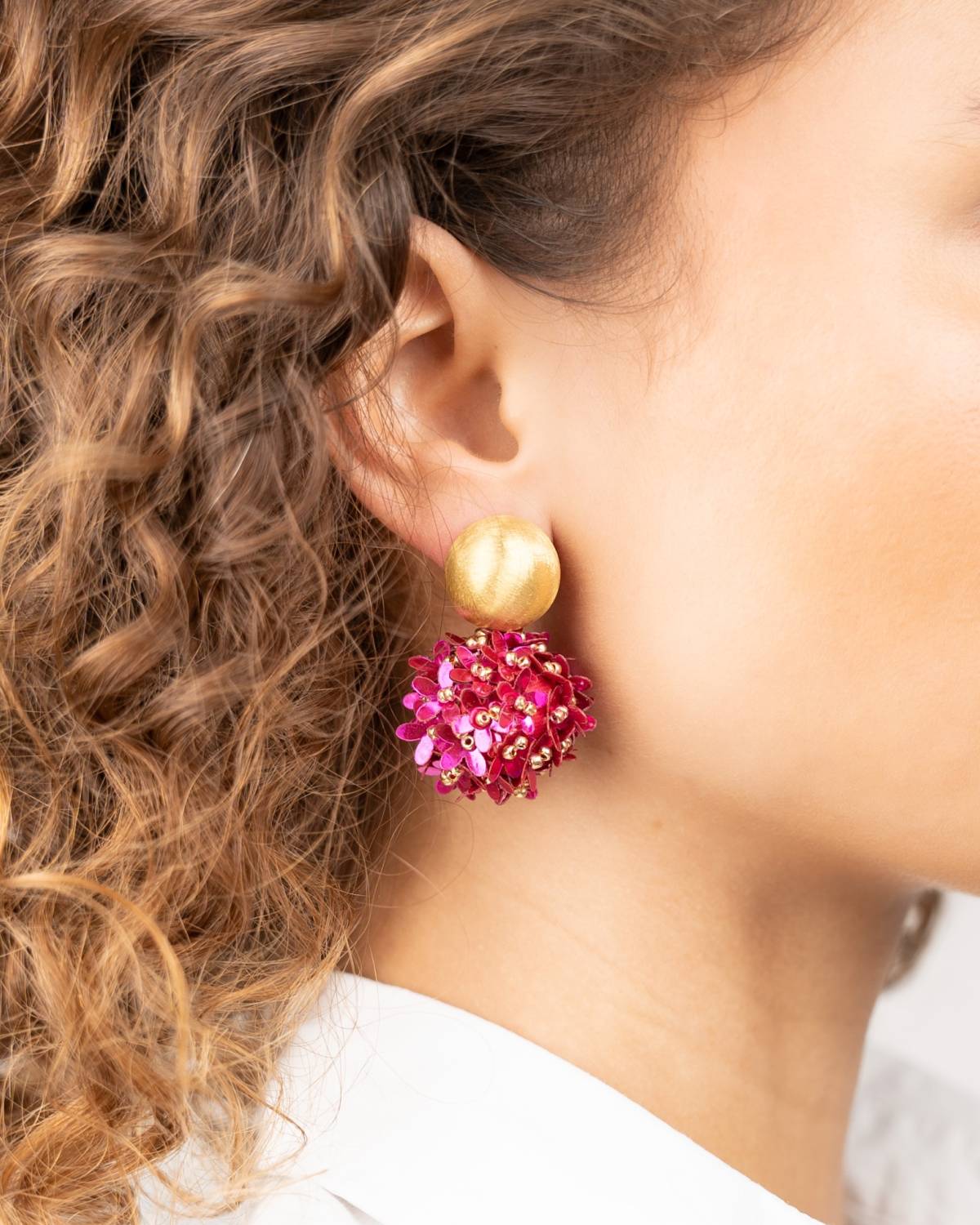 Daisy Sequin Flower Globe M Fuschia Pink - Ohrhänger - 18kt vergoldet