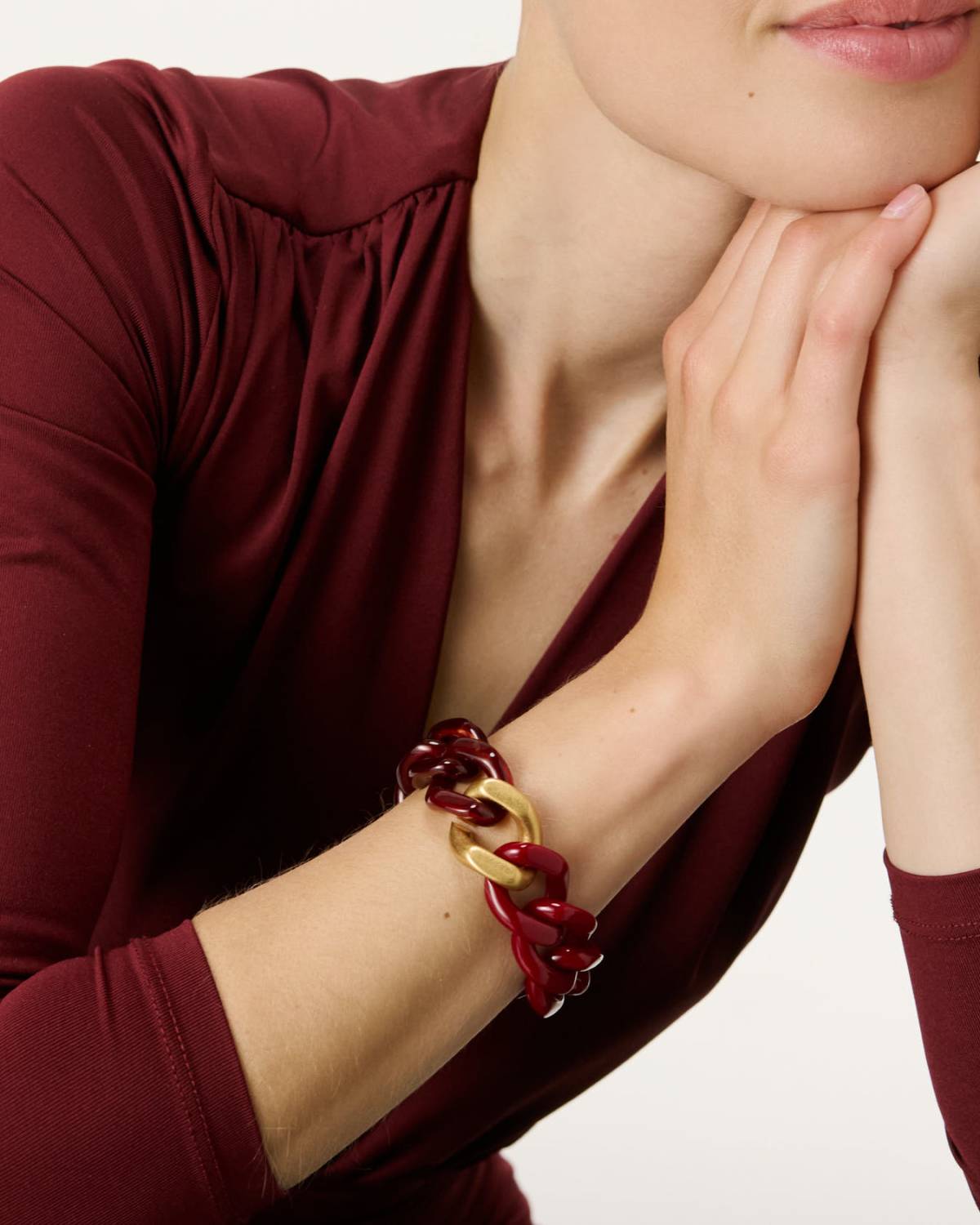Flat Chain Bracelet gold bordeaux-bordeaux marble - Armbänder - gelb vergoldet
