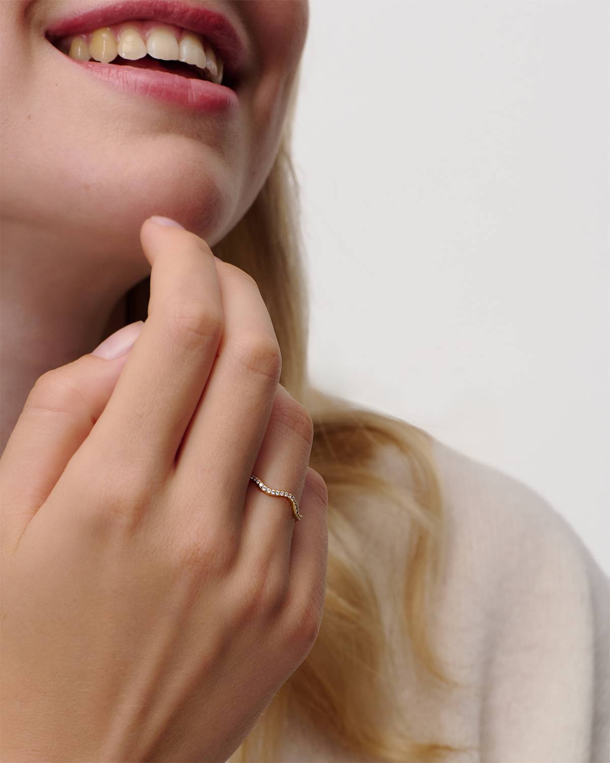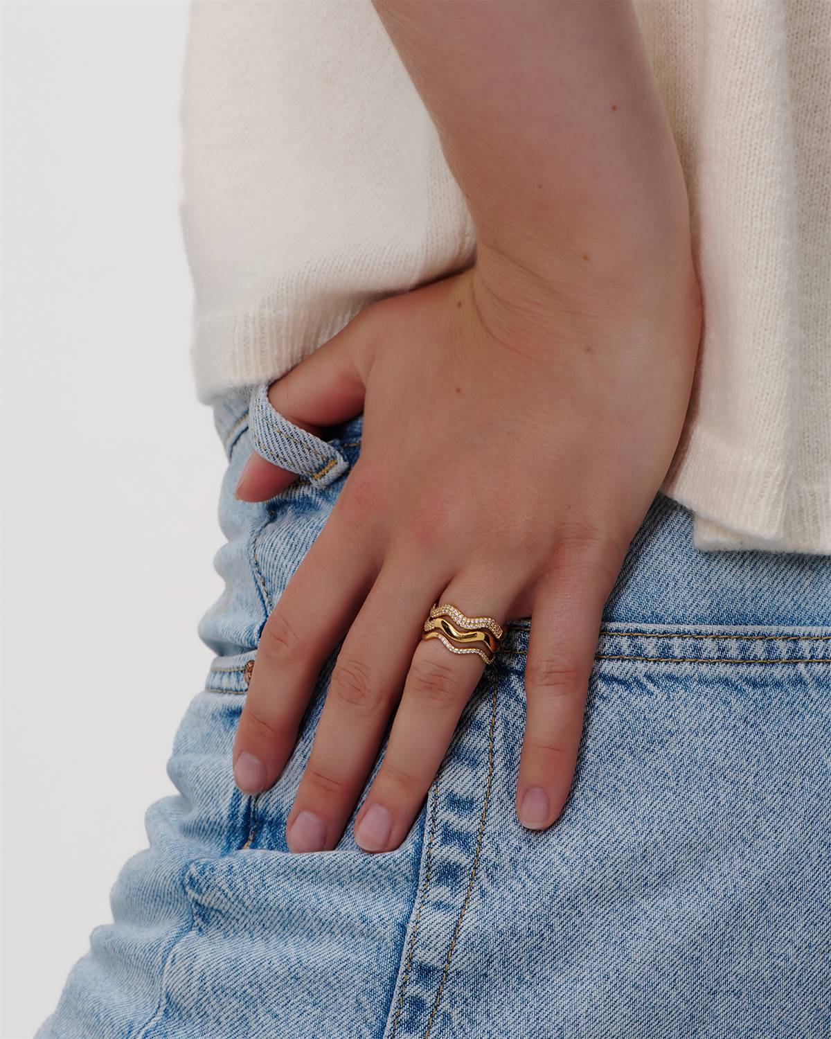 Mit Layla bringst du Abwechslung ins Ring-Stacking. Der Ring aus 18kt Vergoldung mit White Zirconia überzeugt durch seine geschwungene Form und wird so zum Hingucker, ohne zu laut zu wirken. Solo getragen dezent, in Kombination mit anderen Ringen edgy und stylish – Layla passt sich jedem Look spielerisch an.