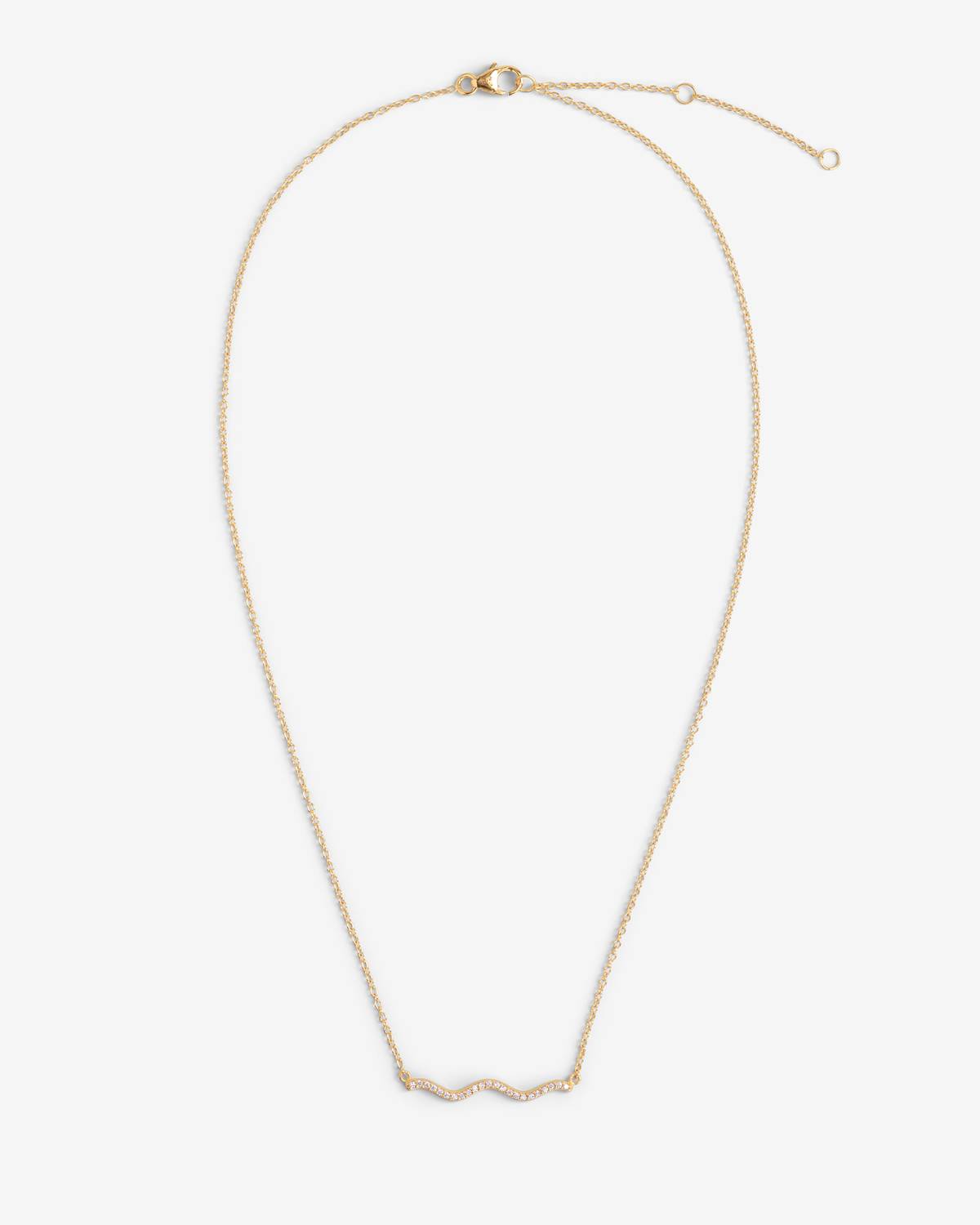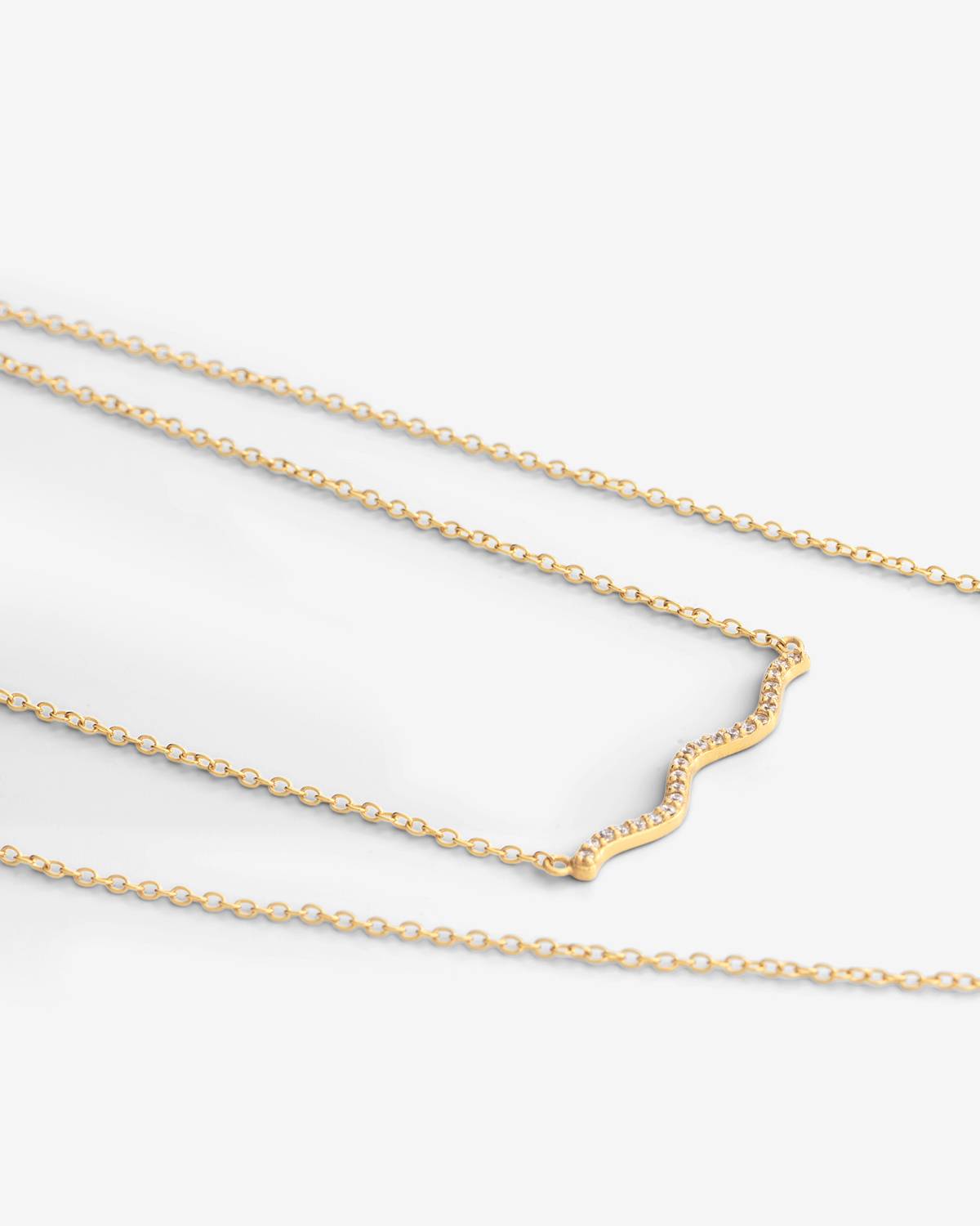 Say hi to Lili – eine Halskette mit Charakter! Das geschwungene Wellen-Design in 18kt Vergoldung trifft auf funkelnde White Zirconia und bringt eine moderne, verspielte Note in deinen Look. Mal edgy, mal sweet – dieses Piece passt sich jedem Outfit an und wird schnell zu deinem neuen Lieblings-Statement.