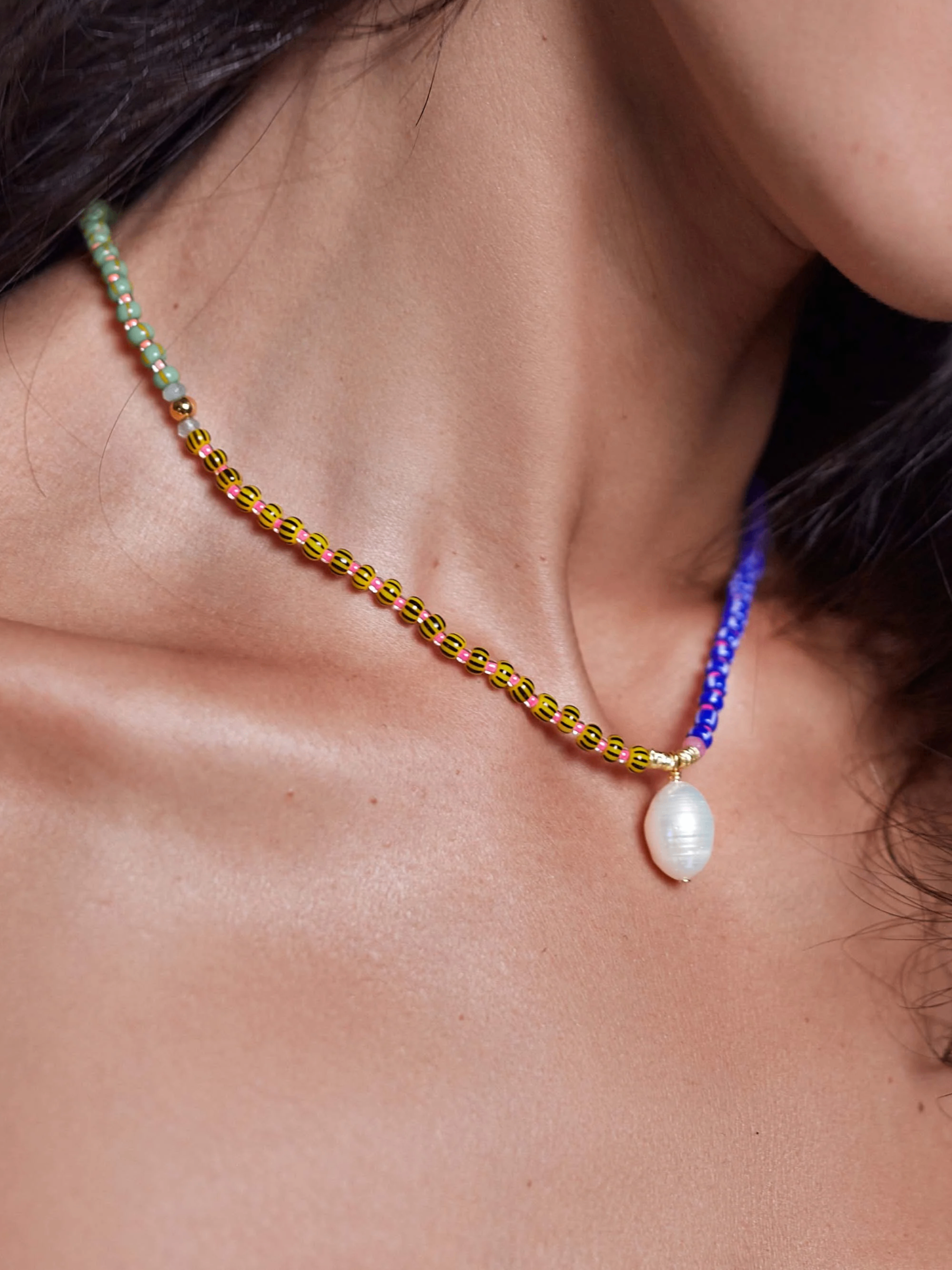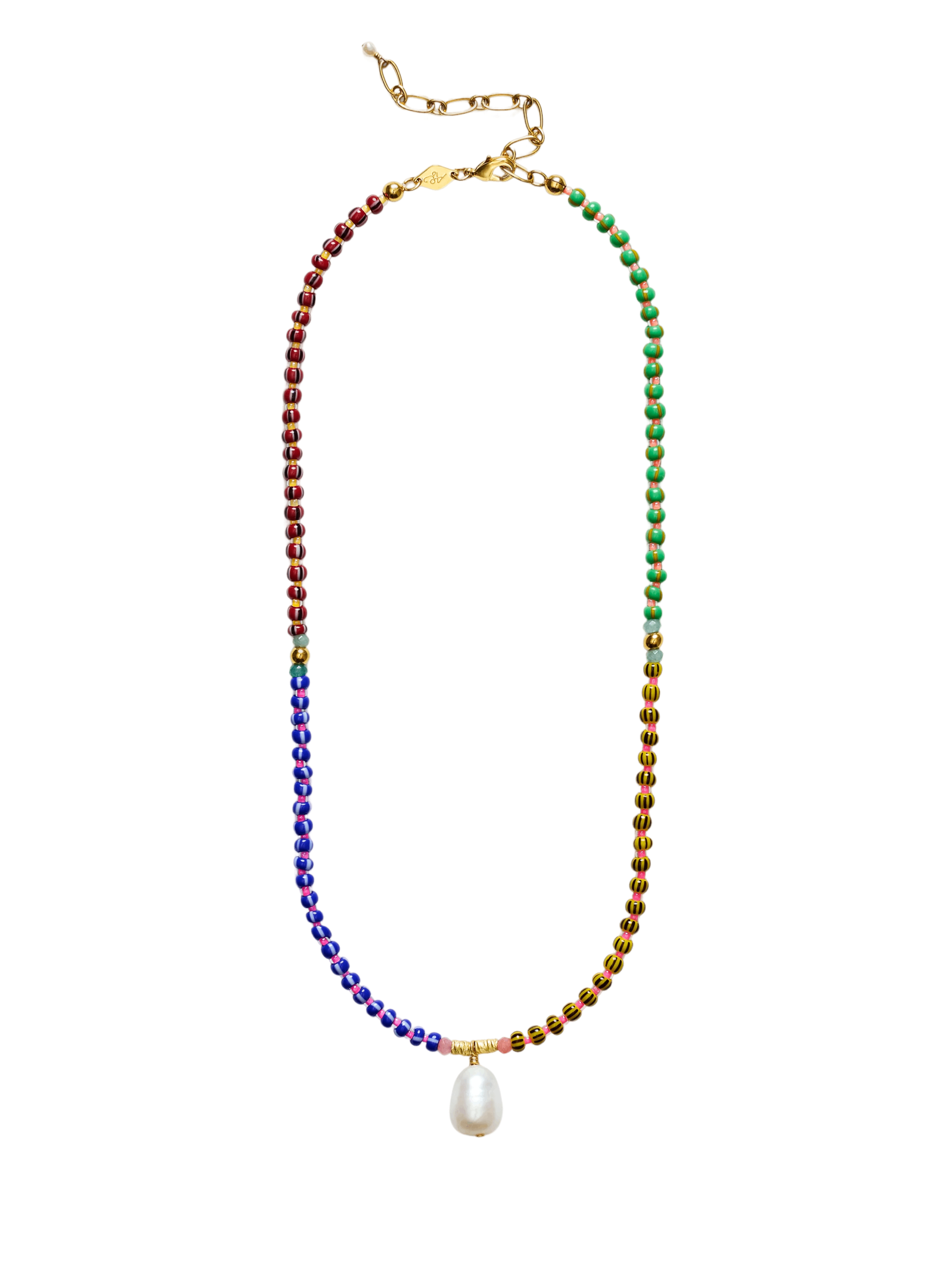 Die Magic Moments Halskette aus der Anni Lu Fall Collection ist ein echtes Stimmungs-Highlight: bunte Glasperlen, grün schimmernder Amazonit, edle Jade und eine Süßwasserperle als funkelnder Abschluss. Mit 18kt vergoldeten Details bringt sie fun & Farbe in deinen Alltag – perfekt für Fashionistas mit Freude am Mix & Match!