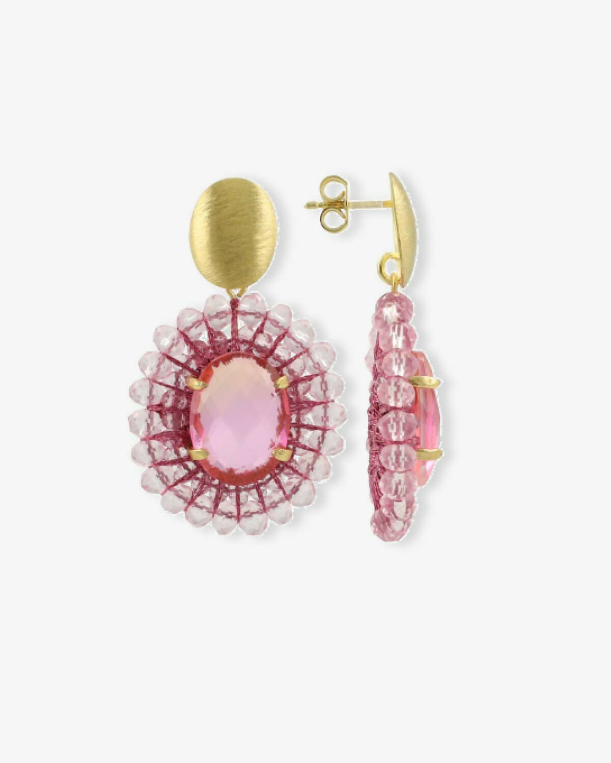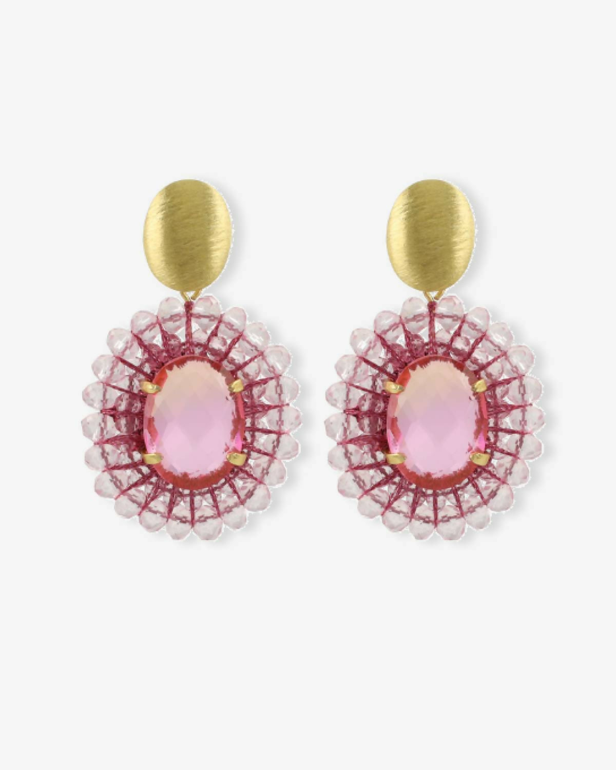 Rosa Ohrringe Oval with Stone XS Mikky - Ohrhänger - 18kt Vergoldet