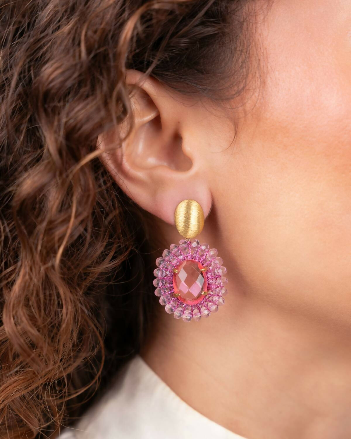 Subtil und raffiniert und ideal fur die neue Saison: die 'Rosa Ohrringe Oval mit Stein XS Mikky van LOTT. Schmuck. Hergestellt aus handgenahten Glasperlen und mit einem raffinierten Finish, das perfekt zur Fruhlingsstimmung passt. Die zarte Leichtigkeit macht diese Ohrringe ideal fur den taglichen Gebrauch in der Fruhlingssaison. Ein Must-have fur den Fruhling.