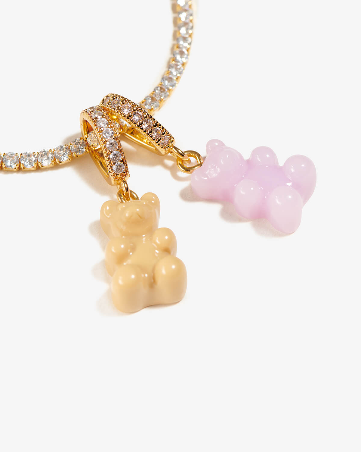 Dieser süße Kettenanhänger von Crystal Haze besticht durch das nostalgische Design eines Gummibärchens. Vielseitig kombinierbar, vervollständigt er jedes Outfit. Ob an Halsketten, Armbändern oder Fußkettchen getragen – die funkelnden Zirkoniasteine, das 18kt vergoldete Messing und das hochwertige Acetat machen ihn zu einem echten Hingucker.
