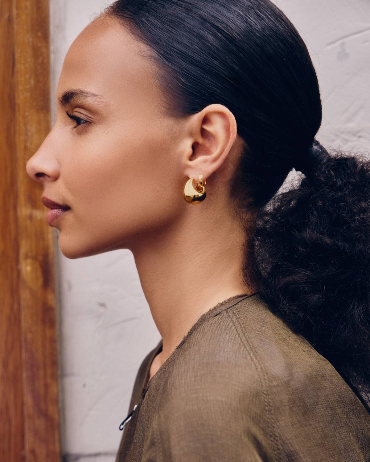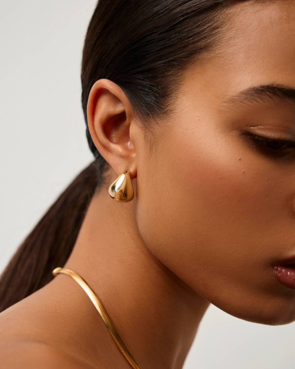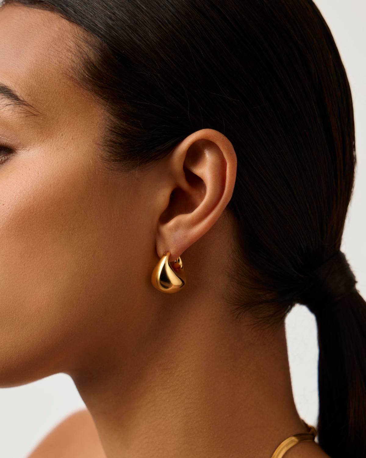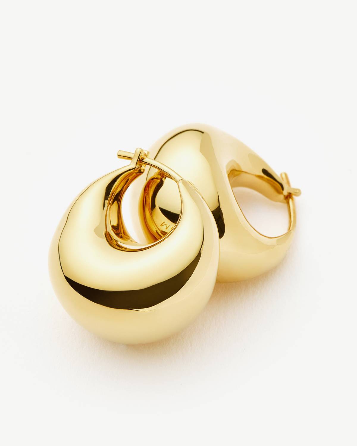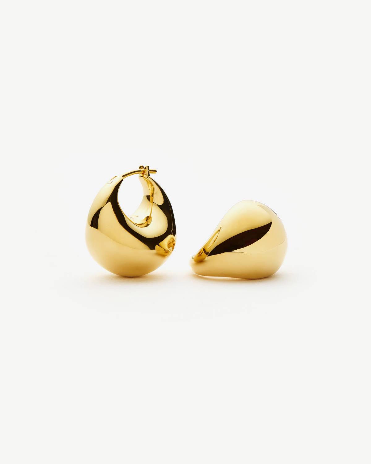 Wie flüssiges Gold geformt zu purer Eleganz: Die Sculptural Chubby Dome Small Hoops zeigen eine weiche, gewölbte Silhouette, die das Licht mit jeder Bewegung einfängt. Das glänzende 18kt Goldplating verleiht ihnen luxuriöse Wärme und einen sinnlichen Glanz – modern, selbstbewusst und wunderbar sculptural.