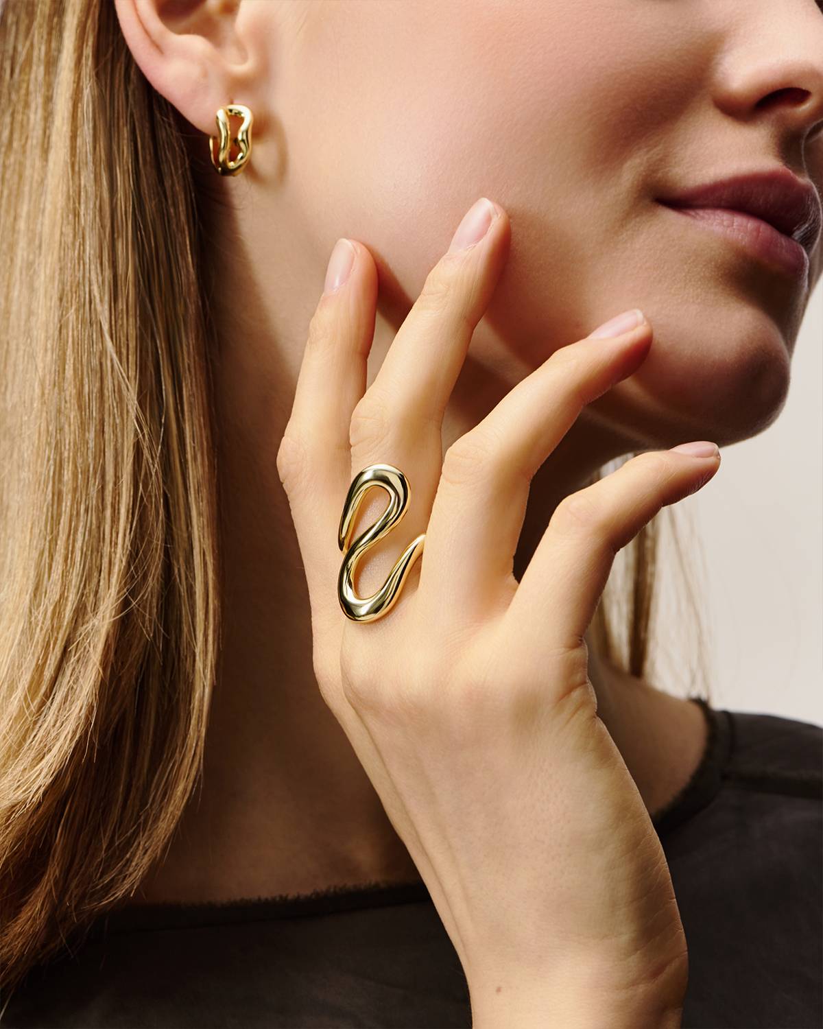 Der Solin Curve Ring von Pompidou vereint fließende Bewegung mit skulpturaler Stärke. Seine weiche, geschwungene Form wirkt wie ein goldener Schwung in perfekter Balance. Das 18-Karat-Goldplating verleiht dem Design einen luxuriösen Glanz und betont die harmonische Linienführung. Ein künstlerisch inspiriertes Schmuckstück, das Modernität, Eleganz und kreative Ausdruckskraft in sich trägt.