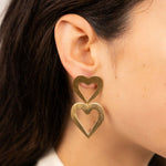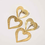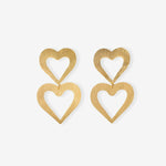 Double Heart Open Satin Brushed Gold - Ohrhänger - Vergoldet