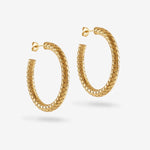 You will fall in love with these earrings! These golden oval hoops are medium-sized and inspired by a cobra.