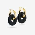 Round Creoles + Double Medium Onyx - Creolen - 18k vergoldet