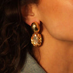 Add some colour to your day! These beautiful earrings will make you shine all day long. The oval element in a bright and summery colour is styled with a classic statement pin. These statement earrings are fit for a queen!