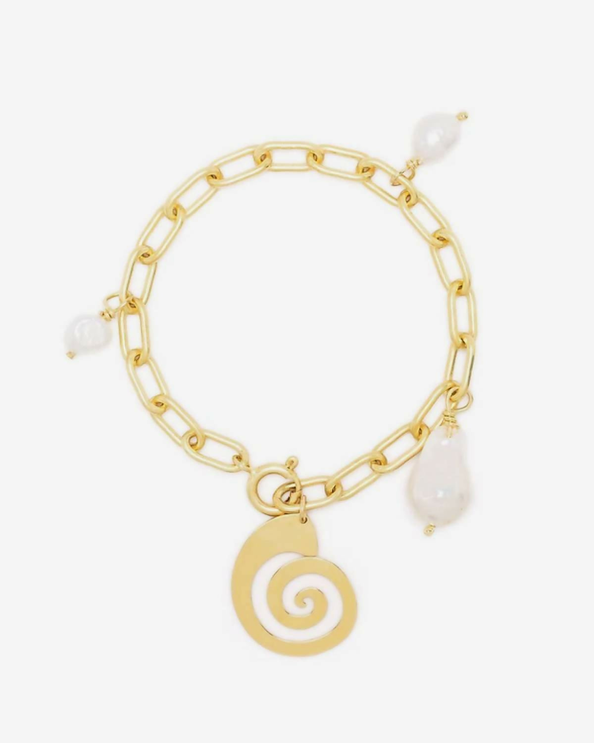 Dieses Armband mit Muschelmotiv bringt einen Hauch von Glamour mit sich und ist das perfekte Accessoire für eine Vielzahl von Outfits.